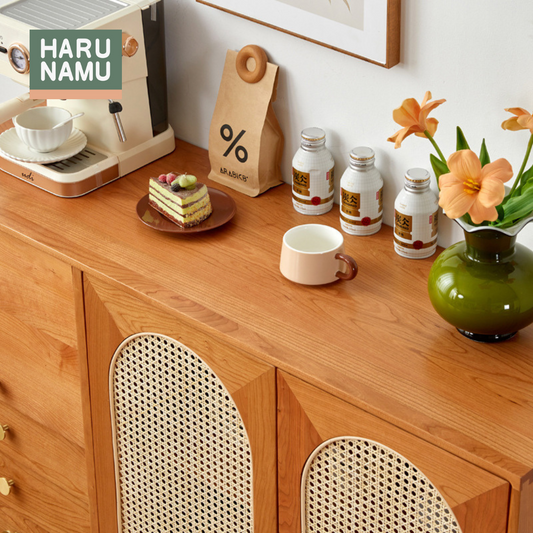 NAMIYA Solid Wood Rattan Sideboard Cabinet