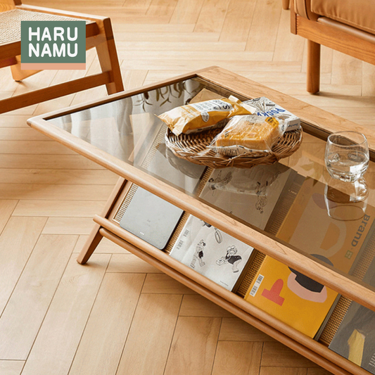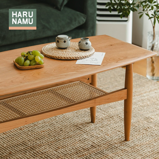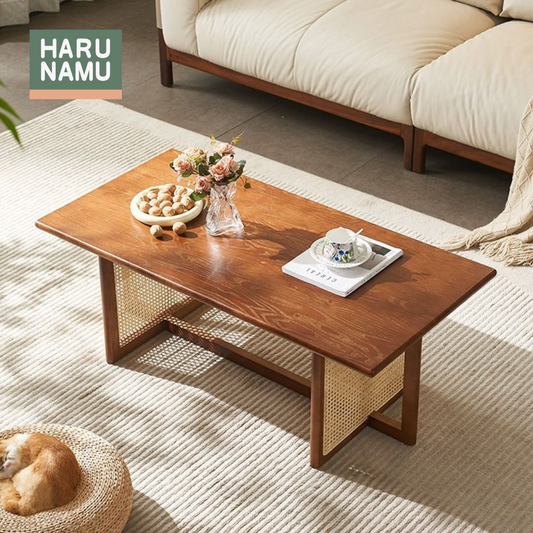TAKAHIRO Solid Wood Rattan Coffee Table