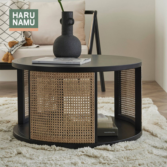 YUMEKO Round Rattan Solid Wood Coffee Table