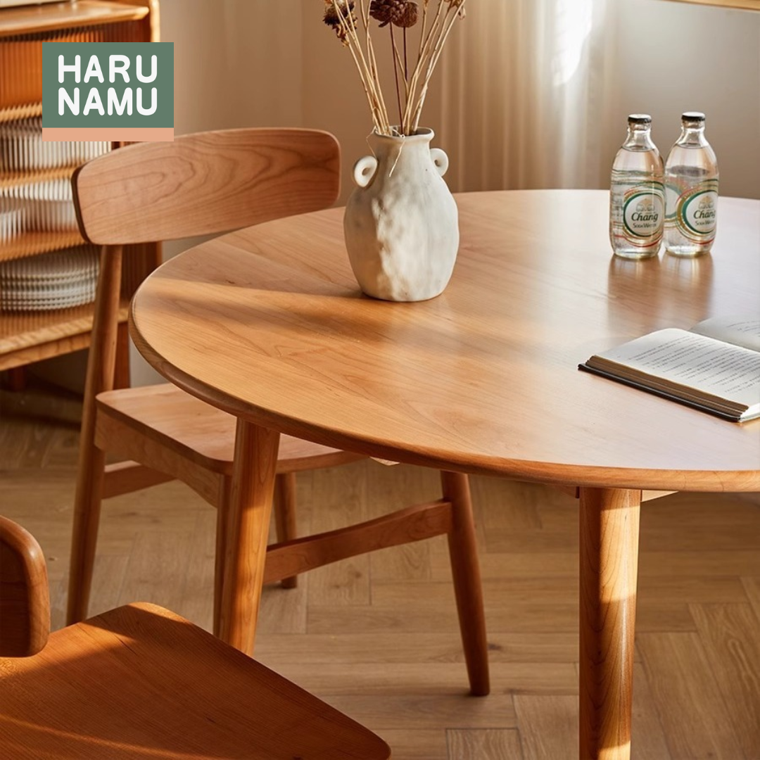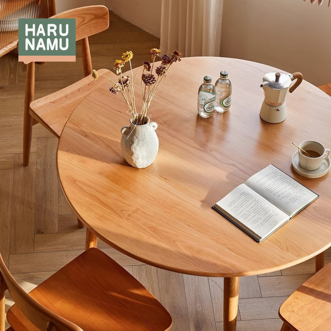 Rich wood grain, steel plate reinforcement, and a softly rounded silhouette that exudes warm and tranquility, make the FUJIKO Solid Wood Round Table a perfect balance of strength and elegance. Available in oak or North American cherry wood, the FUJIKO, thanks to functional design and high-quality materials, blends seamlessly into any decor.