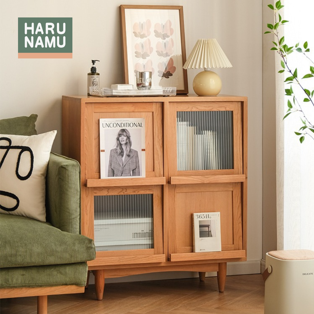 Diversity is the spice of life when it comes to the KIBŌ Solid Wood Side Cabinet, which incorporates three different materials for its doors, bringing a bright and cheerful, yet refined feel to your home.