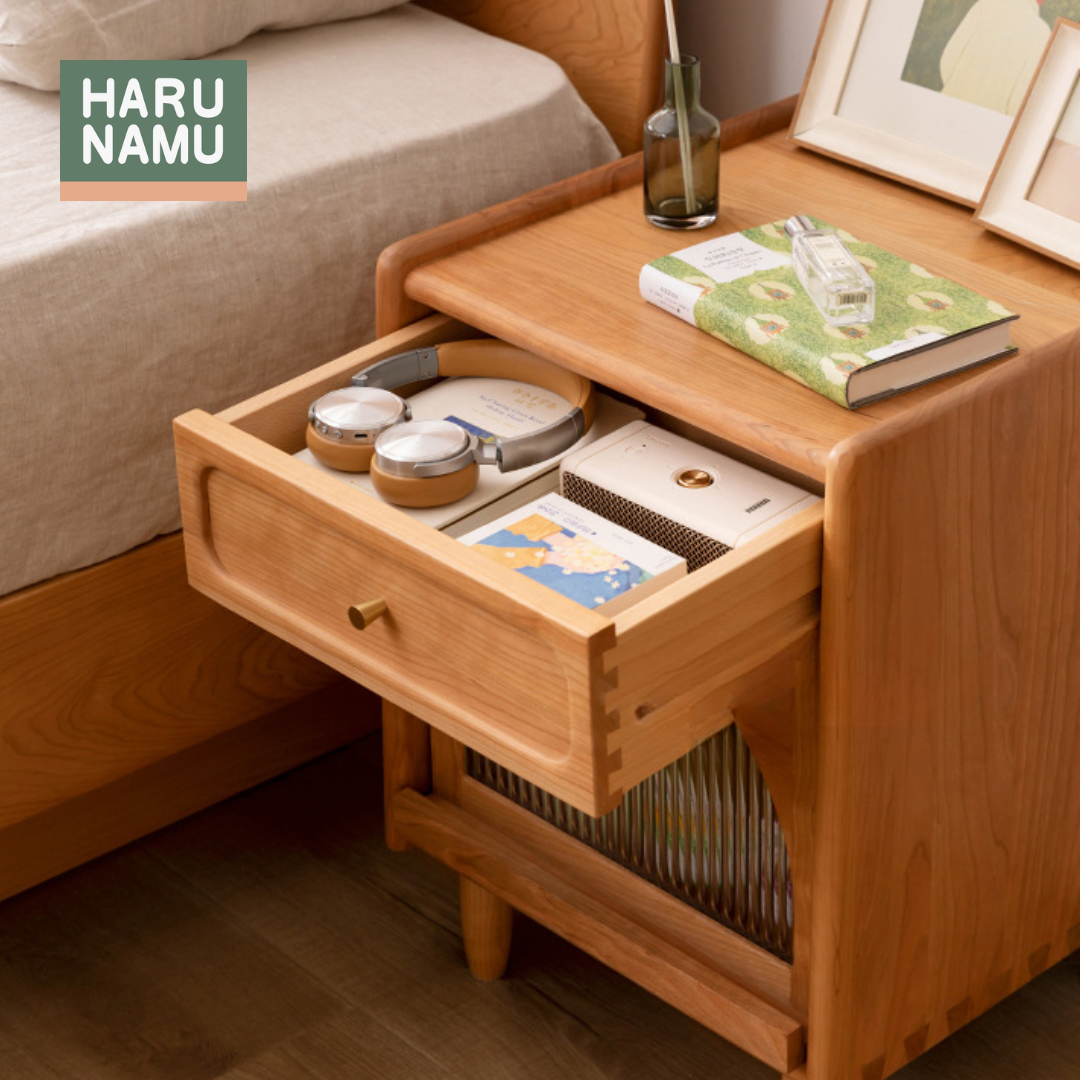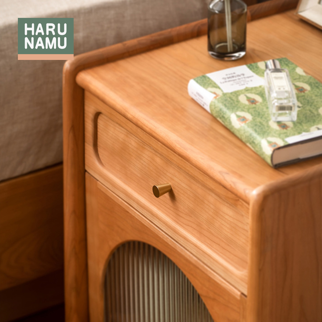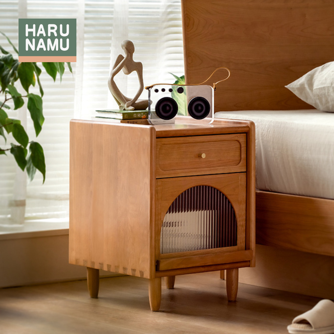 Style, simplicity and fine craftsmanship are the hallmarks of the SAKI Solid Wood Bedside Drawer. Inspired by the minimalist silhouettes of Japanese and Scandinavian aesthetics, it features tasteful decorative details such as the brass handles and fluted glass panels, that blend into your decor while creating a cozy ambiance.